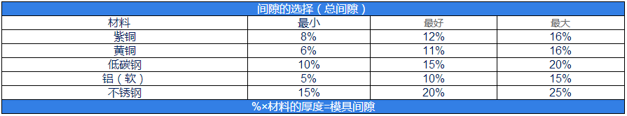 請參照下表選擇模具間隙(表中數據為百分數)
